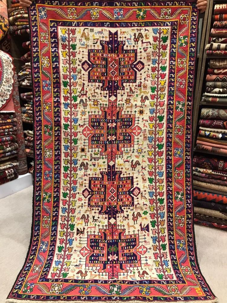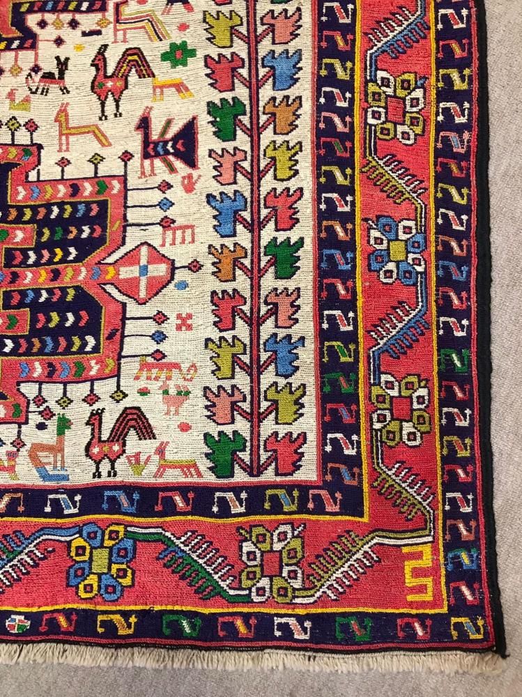 表面シルクの上質なスマック織りキリム*ノアの方舟柄